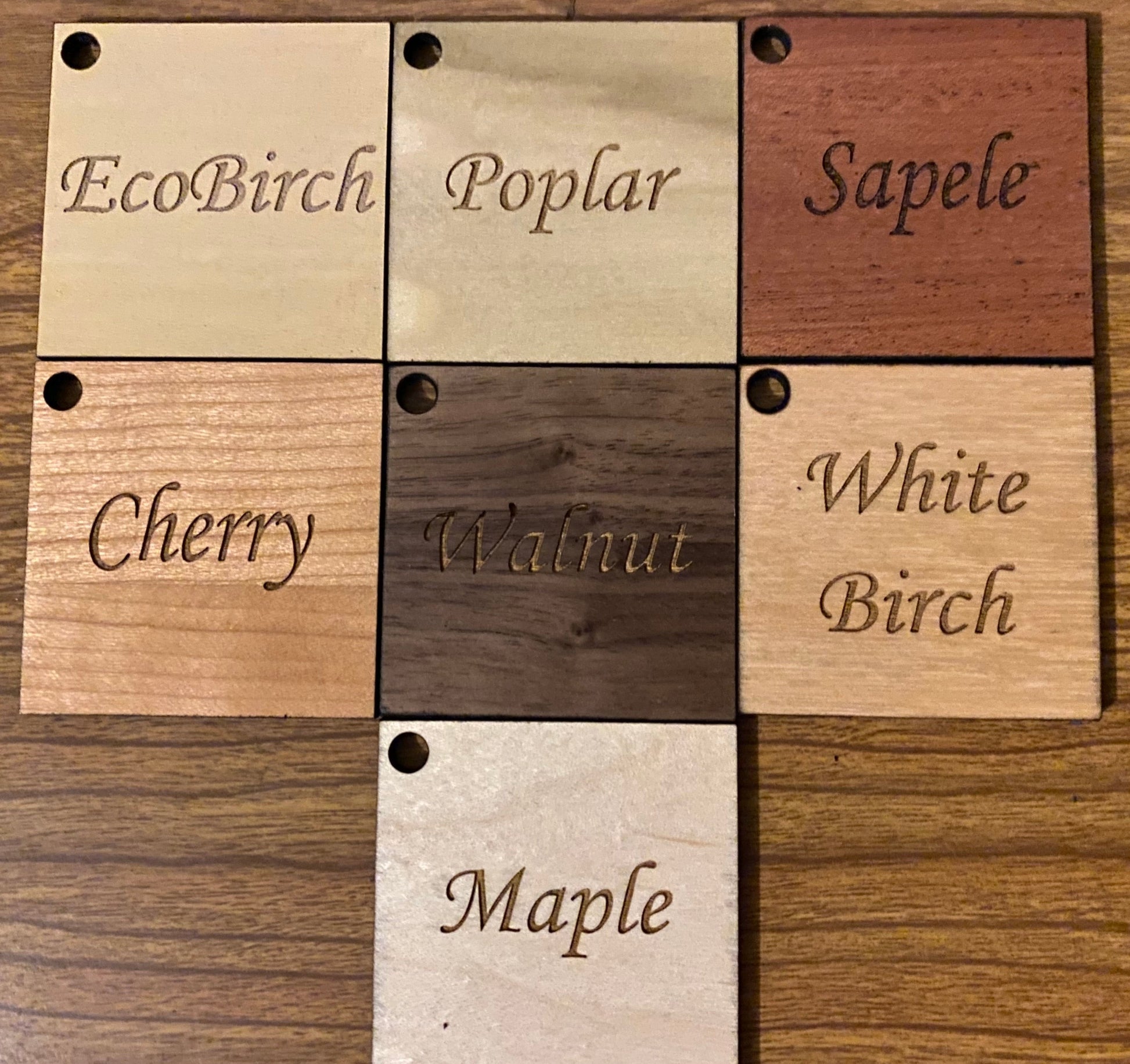 Please see the square swatch photo for available wood options that you can choose from. The darker wood will be used for the trim pieces, unless in the order notes at check out you specify which for the main part of the chest and which for the trim parts of the chest.